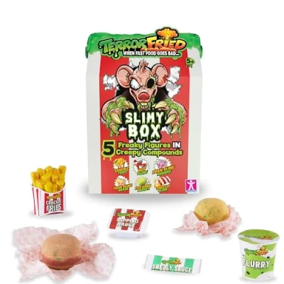 Discover 5 spooky and mysterious figures in 6 gross compounds in your 'Viscous Box' menu; there are four ways to reveal all the figures; includes a sachet of 'stinky sauce' Drop the 'burger' and 'nugget' into the water and activate revelation effervescently Crush and smash the 'Crispy Potatoes' and watch the slime pop out to reveal another character! Remove the lid and open the 'moldy ice cream' to discover the figure inside Open and reveal the 'Salsa' slime to discover the third character, Manufacturer: CHARACTER OPTIONS