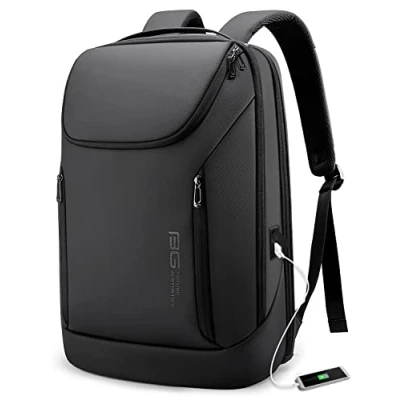 BANGE Business Smart Backpack Waterproof fit 15.7 Inch Laptop with USB Charging Port,Travel Durable Backpack,(Black (two pocket))
