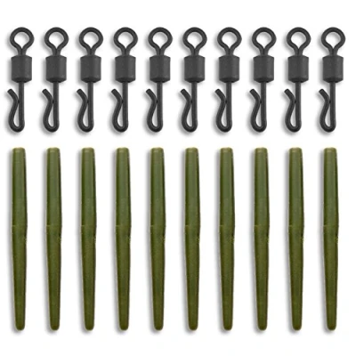 Bank Tackle Anti Tangle Sleeves + Size 8 Quick Change Swivels Carp Terminal (Green, x 20 Sets)