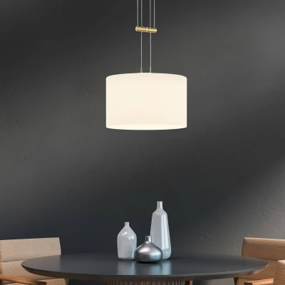 LED pendant light Grazia with opal white glass shade - height-adjustable and dimmable The 1-bulb LED pendant light Gracia is a versatile and flexible light source for tables, counters, etc. Thanks to the special suspension system, the height of the light can be adjusted and dimmed in just a few simple steps. This is done using the vertical dimmable function by tilting the lampshade. The dimming process starts when the lampshade is tilted. Once the desired brightness is reached, the lampshade is released again. This brightness is now illuminated and, thanks to the memory function, is also saved when the light is switched off until the next time it is switched on. Attention: A wall dimmer must not be connected upstream. Another option for using the light is to integrate it into a Smart Home system based on the ZigBee wireless standard, as such a module has been installed in the light. Grazia is a very well-made, high-quality light from Hausen. The luminaire manufacturer in Sauerland was founded in 1947 and still uses high-quality materials to produce first-class living room luminaires that impress with their functionality and special design.