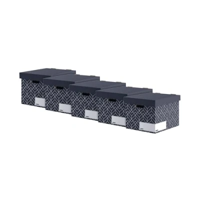 BANKERS BOX Décor Cardboard Archive Boxes with Lids (WxHxD) 32.5 x 28.7 37cm (Pack of 5) Urban Midnight Blue