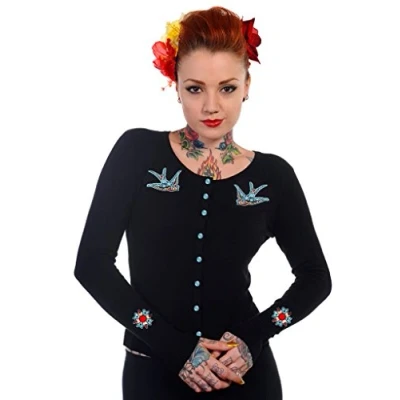 Banned Women's Swallow Bird Rockabilly Retro Cardigan,Black Black, 16