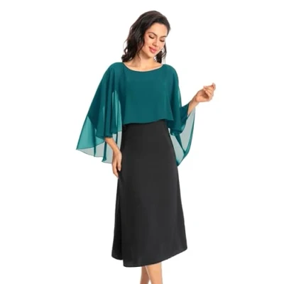 Material: High Quality chiffon fabric, Featuring with Lightweight, Soft, Smooth, super Comfortable and Breathable. One size fits women and girls. This Chiffon Capelet is perfect as an accessory for your evening dress, wedding dress, bridesmaid dress, cocktail dress, prom dress, party dress, homecoming dress, long beach dress. The neck of bridal cape for wedding dress is about 28.5 inches around, and the front length is about 11.5 inches, and the back length is about 27 inches, The cape added just enough coverage. Very versatile with the high / low aspect., You can got a lot of compliments. Looks great on all shapes and sizes! capelets for women elegant is perfect to stay cool at a wedding or draped over your shoulders You will received tons of compliments from all people This chiffon cape for women is Suitable for causal wear, brides, bridesmaids, weddings, mother's gift or any formal events, also for holiday beaches.