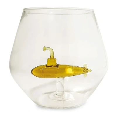 Patrolling the depths of this Bar Bespoke Submarine in a Glass is a wonderful yellow submarine. Hum along to the Beatles' 1968 animated movie Yellow Submarine as you fill this borosilicate glass tumbler with your favourite tipple and carefully added ice cube or two. Guaranteed to be free from Blue Meanies!With a capacity of over 450ml, this glass tumbler is large enough for a generous mixer, or even half a bottle of wine.Wash by hand.Supplied in a smart gift box, so would make a great gift for movie lovers or fans of the Beatles.