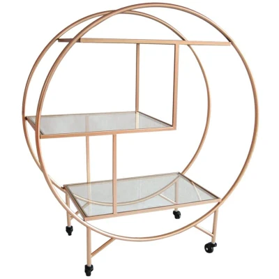 Bar Cart Drinks Trolley Halo Serving Table On Caster Wheels Rose Gold Storage Shelving, 3 Shelves, Art Deco, 30's Styles, Furniture, Vintage, Side table, Tea Party, Modern