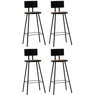 ManoManoGeneral description These antique-style wooden bar chairs exude industrial charm and will make a timeless addition to your home. Made from solid reclaimed wood sourced from old buildings, these chairs retain the unique characteristics of various wood types, including pine, teak, beech, oak, cedar, mango wood, and acacia. Each piece is unique, showcasing beautiful wood grains and signs of wear that tell a story. The sturdy steel frames provide stability, while the footrests ensure comfortable seating. Assembly is easy, and the delivery includes 4 bar chairs. Technical specifications Material: Solid reclaimed wood seat + powder-coated steel frame Overall dimensions: 45 x 36 x 99 cm (W x D x H) Seat width: 35 cm Seat depth: 30 cm Seat height from ground: 74 cm Maximum weight capacity: 110 kg per seat Polished, painted, and lacquered Easy to assemble Delivery includes 4 bar chairs Other information