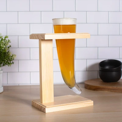 Bar Drinkstuff Viking Beer Horn Glass with Stand 17oz / 480ml Glass, Novelty Drinking