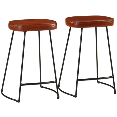 ManoManoGeneral description This retro bar stool in an iconic design will enhance your home interior. It is a versatile seating option suitable for various settings, including bars, restaurants, balconies, or even next to a bookshelf for relaxation. Technical specifications Colour: Dark brown Material: Metal frame with leather upholstery Dimensions: 41 x 29 x 62 cm (W x D x H) Maximum load capacity (per seat): 110 kg Assembly required: Yes Delivery contains: 2 x Bar stool Other information