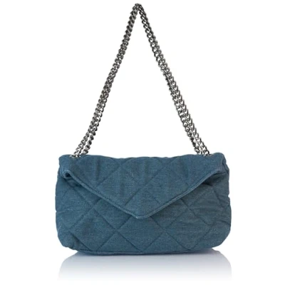 Casual denim bag for women Decorative diamond quilting Flap with magnetic closure Titanium-coloured link chain as carrying strap Two slip pockets and a zip pocket in the inner compartment