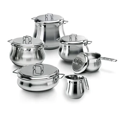 Material: durable and hygienic 18/10 stainless steel, suitable for storing food Triple base with 3 layers of steel-aluminium steel for optimal heat distribution Suitable for all heat sources, including induction Internal satin to facilitate daily cleaning 25 years. Made in Italy. Battery capacity: 8 pieces: pot diameter 22 cm, saucepan diameter 18 cm, pot diameter 14 cm, pan diameter 22 cm, lid diameter 14 cm, lid diameter 18, lid diameter 22 cm (x2)