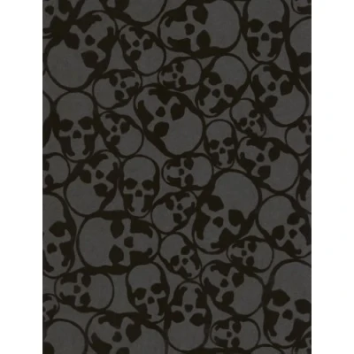 Barbara Hulanicki Designer Black Skulls Print Flocked Luxury Wallpaper Paste The Wall Application Suitable for Any Room Feature or All 4 Walls Design