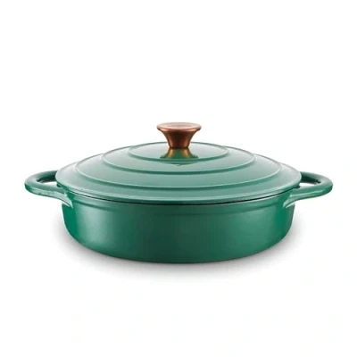 Barbary & Oak BO800253GRN Shallow Cast Iron Casserole Pan with Durable Enamel Interior, 28cm, Verdigris Green