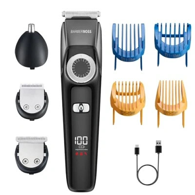 Barberboss 3 in 1 Beard & Hair Trimmer for Men, Cordless Grooming Kit with Nose/Ear Trimmer, Adjustable Dial, Ceramic Blades, Waterproof USB Charging, Men’s