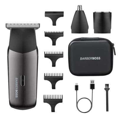 3-in-1 Multi-Functional Grooming Kit: The BarberBoss Men’s 3-in-1 grooming kit is designed with precision and versatility in mind featuring 3 interchangeable heads - a Hair & Beard Trimmer, a Nose & Ear Trimmer and a Mini Foil Shaver. Switch attachments easily to achieve a full grooming routine with one compact device. Adjustable Beard & Hair Trimming with 5 Combs:This multi-function men’s shaver set includes 4 guide combs (1-4 mm) for precise beard, hair, stubble, edging, and fade control, plus 1 protective comb for added comfort. Sharp blades deliver clean, even cuts without pulling or irritation. Mini Shaver Head for a Smooth Finish: Designed for precision detailing, the mini shaver head glides smoothly across the face and neck for a close, comfortable shave. Ideal for finishing touches and maintaining a polished, professional look in seconds. Precision Nose & Ear Trimmer for Gentle Detailing: The rotary nose and ear trimmer removes unwanted hair gently and efficiently. Engineered for comfort and control, it trims neatly without tugging or nicking the skin. Dual-Speed Motor with Long Battery Life: Designed with Low and High speed settings, offering up to 80 minutes of runtime after a 1.5-hour charge and can be recharged easily via any standard 5V 1A USB port for everyday convenience. Compact & Travel-Ready with Storage Pouch: Compact and lightweight, the shaver fits easily into your wash bag or gym kit. Supplied with a travel pouch for easy storage, detachable heads and a cleaning brush make maintenance quick and hygienic ideal for home, travel, or everyday use.
