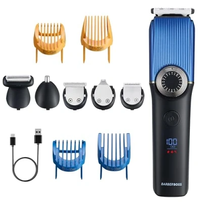 BarberBoss 5 in 1 Hair Clippers for Men, Beard, Hair, Nose, Body & Ear Groomer, 39 Trim Lengths, Precision Dial, LED Display, USB C Charging, Men’s Beard Trimmer, Waterproof Grooming Kit