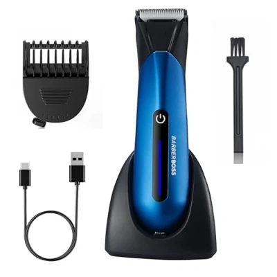 BarberBoss Body & Groin Trimmer, Electric Pubic Hair Ball Shaver for Men, Precision Groomer with Adjustable Length Comb, Men’s Waterproof Intimate Grooming