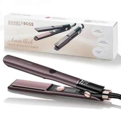 BarberBoss Ceramic Hair Straightener, Flat Iron with Floating Plates, Negative Ion & Keratin Infusion for All Types, Salon Grade Styling Tool Hair, Purple (QR 8411, Purple)