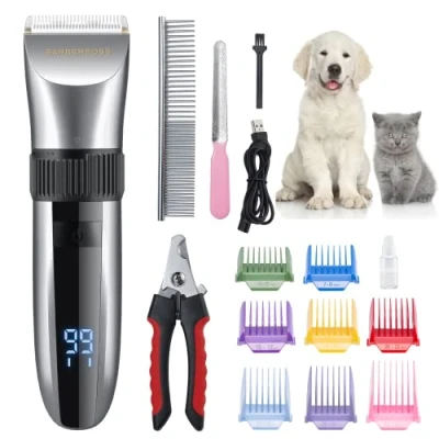 BarberBoss Cordless Dog Grooming Clipper Waterproof, Ceramic Blades, LED Display, Fast Charging, Electric Pet Clippers for Dogs Cats Pets Hair Trimmer QR 9082