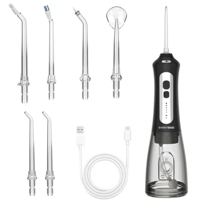 BarberBoss Cordless Water Flosser for Teeth & Gums 6 Multi Function Tips, LED Screen, USB Rechargeable, Travel Case Included Electric Oral Irrigator Braces, Implants Gum Health (Black)