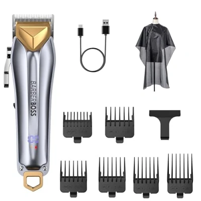 BarberBoss Hair Clippers Men, Rechargeable Men's Styling Kit, Cordless & Beard Trimmer, Face Detailer, Precision for Home Haircuts, Grooming Kit