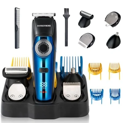 BarberBoss Men’s Body Grooming Kit, 5 in 1 Beard, Hair, Body, Eyebrow & Nose, Ear Trimmer, Groomer with Precision Dial, 39 Length Settings, Waterproof Cordless Trimmer for Men