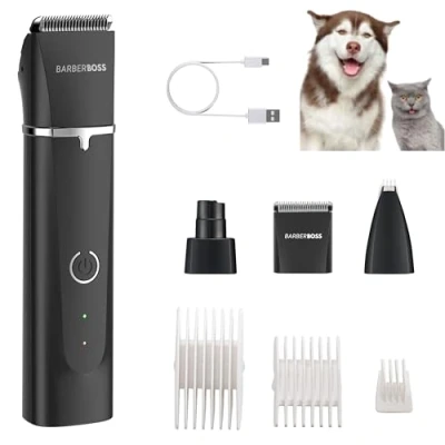 BarberBoss Professional Dog Grooming Kit Pet's Groomer, Cordless Clippers for Thick & Matted Fur, Cats Paw Trimmer, Cat Clippers, Rechargeable Pet Set