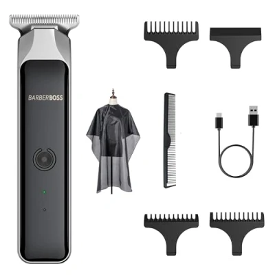 Professional Hair & Beard Trimmer: The BarberBoss trimmer is designed for both professional and at-home use. This versatile grooming kit includes a rechargeable cordless hair clipper, USB charging cable, 3 guide combs, and a cleaning brush – everything you need for a flawless grooming session, from haircuts to beard trimming. Stainless Steel T-Blade: Equipped with a high-quality stainless-steel T-blade, this trimmer offers sharp precision for smooth, quick cuts on both hair and facial hair. The self-sharpening blades ensure a clean, precise trim without pulling or tugging hair, making it ideal for both beard and hair grooming. Length Adjustments Without Combs: Effortlessly adjust the trimming length with the clipper’s length adjustment feature. Cuts as short as 0.5mm for a close finish, with flexible options for a clean, precise cut without needing guide combs. Guide Combs for Precision Styling: Achieve your ideal trim with 3 included guide combs (0.5mm, 1mm, and 2mm) for a versatile and precise grooming experience. These combs allow you to select the perfect length for a consistent, polished look every time. Compact & Ergonomic Design: The BarberBoss Men’s Hair Clipper boasts a sleek, portable, and ergonomic design, offering professional-grade grooming results wherever you are. Its comfortable, easy-to-hold body provides excellent grip and control for a seamless grooming experience. Long-Lasting Rechargeable Battery: Powered by a high-performance motor, the trimmer is ideal for all hair textures and thicknesses. It offers up to 180 minutes of cordless use on a full charge, and the USB charging cable allows for easy recharging via car sockets, laptops, power banks, or 5V sockets for continuous grooming. Charging Indicators: Stay in control with the red/green LED indicator. The red-light flashes while charging, and the green light indicates when the trimmer is fully charged and ready for use, ensuring you're never left in the dark.