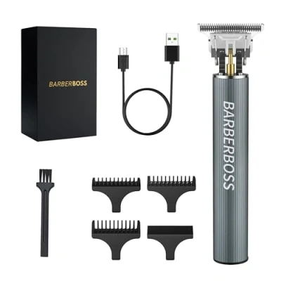 Comprehensive Professional Grooming Kit: The Barberboss Professional Hair & Beard Trimmer set includes a high-end Cordless T-Blade Trimmer, three precision Guide Combs (0.5mm, 1mm, 2mm), a USB Charging Cable, and a Cleaning Brush. This all-encompassing kit is designed to help you achieve your desired style seamlessly, whether at home or on the go. Precision-Crafted Stainless Steel T-Blade: Expertly engineered for superior performance, our stainless steel T-blade offers unmatched precision in beard trimming and facial grooming. Made from high-grade materials, this blade ensures a sharp, clean cut every time, allowing users to achieve their desired styles effortlessly and with confidence. Versatile Lengths for Tailored Styling: Equipped with a precise 0.1mm T-blade, the Barberboss trimmer provides impeccable grooming right out of the box. For added versatility, the three guide combs (0.5mm, 1mm, 2mm) enable a wide range of styling choices. Whether you prefer a close trim or a more defined look, you can achieve your desired style with unmatched precision and consistency every time. Master of Precision Detailing: This trimmer excels in defining hairlines, crafting beard edges, and shaping sideburns. Perfect for crisp fades, close shaves, and tailored beard designs, it stands as an indispensable tool for those committed to maintaining a sharp and individualized look. Achieve professional-quality detailing and grooming effortlessly. Compact & Cordless Convenience: Designed with portability in mind, this lightweight trimmer is perfect for those always on the move. Its cordless feature ensures uninterrupted and worry-free grooming, making it an essential tool for modern men who prioritize both convenience and precision. Enjoy seamless grooming anytime, anywhere. Quick USB Charge, Long-Lasting Performance: With the included USB cable, a quick 3-hour charge through a car socket, laptop, power bank, or 5V socket provides up to 180 minutes of continuous grooming. This long-lasting battery life ensures you can enjoy extended grooming sessions without interruptions, making it perfect for both daily use and travel. Hassle-Free Maintenance: Maintaining your trimmer is easy and efficient. While not fully waterproof, the water-resistant blades can be quickly rinsed under a tap for easy cleaning. Use the included brush to clean the cutter head and a dry cloth to wipe the aluminum body, ensuring your trimmer remains in top condition for optimal performance every time.