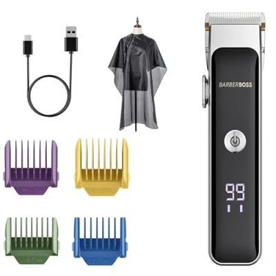 BarberBoss Professional Men’s Facial Trimmer & Beard Grooming Kit: Hair Clipper, Precision Dial, Ceramic Titanium Blades, 2 Speed Settings, USB Rechargeable, Waterproof, LED Display
