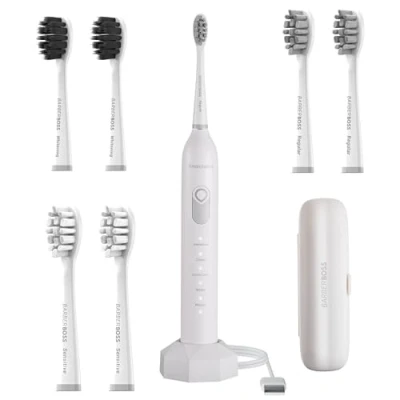 BarberBoss Smart Electric Toothbrush for Adults, 6 Replacement Heads, 5 Cleaning Modes, Pressure Sensor, Quad Interval Timer & USB Charging, Sonic