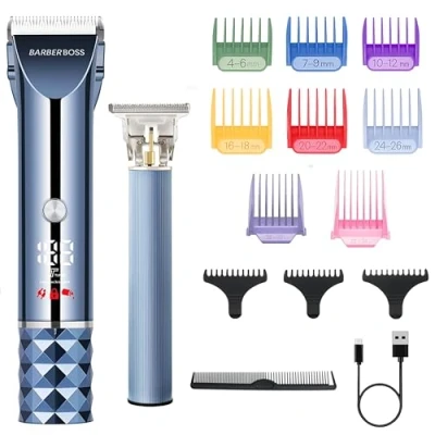 Barberboss Turbo Beard & Hair Clipper for Men, LED Cordless Trimmer, Adjustable Blade Dial, USB Fast Charging 8 Length Comb Set, Men’s Grooming Kit