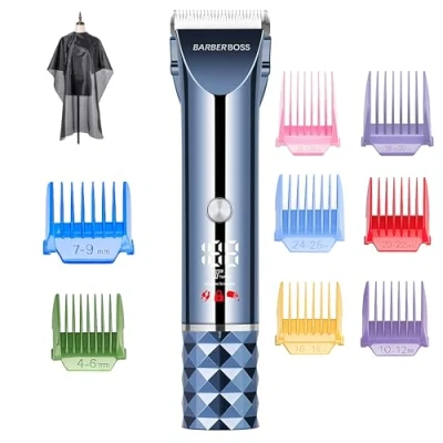 BarberBoss Turbo Hair & Beard Trimmer for Men, Cordless Rechargeable Body Clipper with Adjustable Blade, LED Screen, 8 Guide Combs, Men’s Grooming Kit