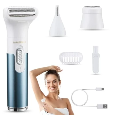 BarberBoss Women’s Electric Shaver, Rechargeable 3 in 1 Cordless Hair Removal, Trimmer for Face, Body & Bikini, Compact Groomer with Precision Heads, USB Charging