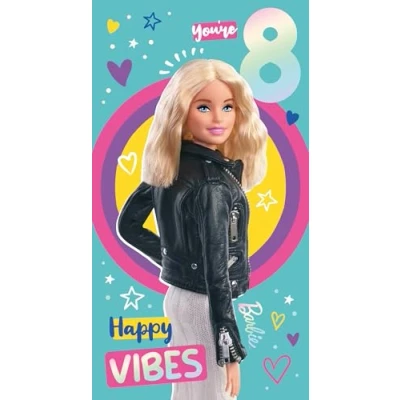 Celebrate her special day with this fabulous Barbie Age 8 Birthday Card! Featuring the iconic Barbie in a fun and vibrant design, this card is perfect for any young Barbie fan turning eight. With bright colours, sparkles, and playful accents, it captures the magic and excitement of reaching this milestone age. Whether you're a parent, relative, or friend, this card is sure to bring a big smile to her face and make her birthday extra special! Vibrant, High-Quality Finish – Printed on durable card with bright colours and a polished look that stands out and delights.