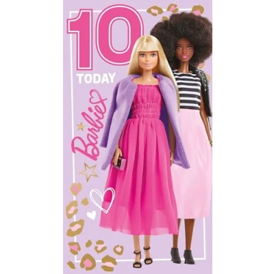Celebrate her special day with this fabulous Barbie Age 10 Birthday Card! Featuring the iconic Barbie in a fun and vibrant design, this card is perfect for any young Barbie fan turning ten. With bright colours, sparkles, and playful accents, it captures the magic and excitement of reaching this milestone age. Whether you're a parent, relative, or friend, this card is sure to bring a big smile to her face and make her birthday extra special! Vibrant, High-Quality Finish – Printed on durable card with bright colours and a polished look that stands out and delights.