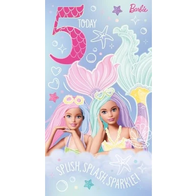 DESIGN THEME: Charming Barbie-themed birthday card perfect for a 5-year-old's special celebration, featuring delightful multicolour illustrations CARD DIMENSIONS: Standard-sized greeting card measuring 22.86 cm x 12.7 cm, providing ample space for your heartfelt birthday message INTERIOR FEATURES: Blank interior allowing for personalised messages to make the celebration more meaningful and special STYLE: Decorative pattern with playful elements that bring excitement and joy to the birthday celebration PERFECT FOR: Ideal greeting card for young children turning 5, suitable for marking this special milestone in their life