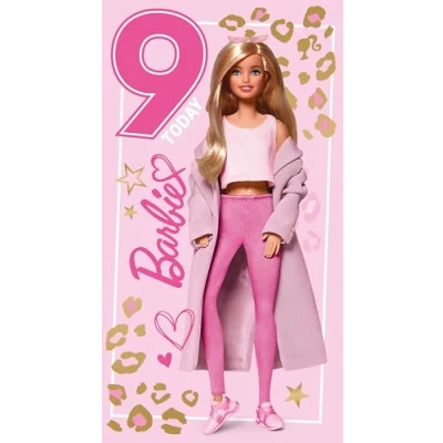 Celebrate her special day with this fabulous Barbie Age 9 Birthday Card! Featuring the iconic Barbie in a fun and vibrant design, this card is perfect for any young Barbie fan turning nine. With bright colours, sparkles, and playful accents, it captures the magic and excitement of reaching this milestone age. Whether you're a parent, relative, or friend, this card is sure to bring a big smile to her face and make her birthday extra special! Vibrant, High-Quality Finish – Printed on durable card with bright colours and a polished look that stands out and delights.