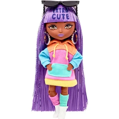 BARBIE BRAND Extra Minis Doll #7 (5.5 in) Wearing Color Block Hoodie Dress & Boots, with Stand Accessories, Toy for Kids Ages 3 Years Old Up, Multicolor, HJK66