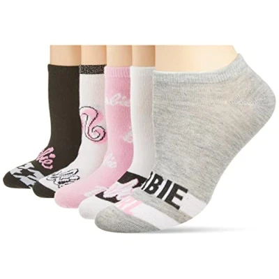 BARBIE SOCKS FOR WOMEN: These comfortable & stylish Barbie themed no show socks for women are officially licensed merchandise, and they will be the perfect addition to any outfit. Our cute socks for women fit sock sizes 9–11 and shoe sizes 4–10.5. GRAPHIC SOCKS: Classic low cut style, no bunching within shoes. Featuring the Barbie Logo & detailed graphics! With 5 Barbie themed pairs in a pack, you'll have lots of options to love. COMFORTABLE MATERIAL: These socks are made from high-quality breathable fabric that is 98% polyester and 2% spandex. These durable, fun socks are very comfortable and stretch over the foot as they are pulled on. They stay in place nicely and have a no-show cut. EASY TO CARE FOR: These graphic socks are machine washable and easy to care for. Turn them inside out before washing to preserve the graphic design, and wash in cold water. Tumble dry, and you will be ready to wear these fun socks again in no time! GREAT GIFT: These cute graphic socks are the perfect gift for all Barbie fans. They make ideal stocking stuffers for Christmas or Mothers Day surprise. They are also great party-favor socks for birthday celebrations!