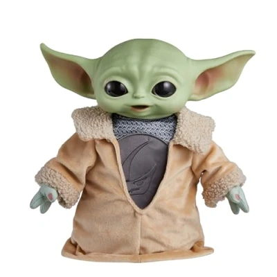 This 11-inch Din Grogu plush toy will capture the hearts of Star Wars fans everywhere. Inspired by season 3 of the Disney+ series, The Mandalorian, the adorable Grogu character with green skin, big ears and large eyes, has endeared the hearts of fans across the galaxy. The toy plush has a soft body and a sturdy base filled with beans, perfect for cuddling or display as a collectible. The figure wears his robes, as well as the rondel and chainmail he has been given, celebrating his official adoption as Din Grogu. Star Wars fans will love taking on the role of The Mandalorian and caring for Grogu on their own., Manufacturer: Mattel