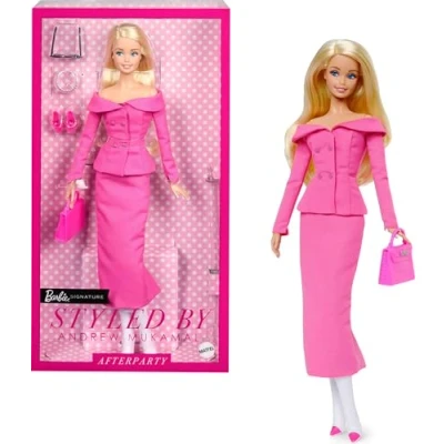 Barbie celebrates the renowned fashion stylist Andrew Mukamal with this Styled by Andrew Mukamal Barbie doll and accessories! Inspired by 1985’s beloved Day to Night fashion doll, the collectible features 3 unique looks within one outfit! Barbie doll starts the day in a stylish off-the-shoulder pink blazer with matching pencil skirt. Remove the jacket and reverse the pencil skirt for a shimmering evening look ready to walk the red carpet! Underneath these looks is a sleek, sparkly pink dress that will dazzle at the afterparty! Style Barbie doll with 2 pairs of shoes, a pair of sunglasses, jewelry and a handbag! Barbie fans and Andrew Mukamal followers alike will love this taking this doll from day to night to anywhere!, Manufacturer: Mattel