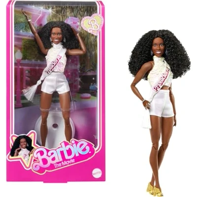 Take home a part of Barbie The Movie with a radiant President Barbie collector doll in her fun, dance party outfit! Recreating looks modeled by Issa Rae in the film, President Barbie wears a sparkly, high neck, white top with matching white bottoms. Her golden heels complete her presidential look. She looks just like President Barbie in the film with her bouncy, full head of curls and elaborate statement bracelet. A presidential sash with a white tassel adds a finishing touch to her stately look. She's all set to lead Barbie Land with both grace and style! This posable doll comes in collectible Barbie The Movie packaging. Check out the whole collection for more fantastic gift ideas! Each sold separately, subject to availability., Manufacturer: Mattel