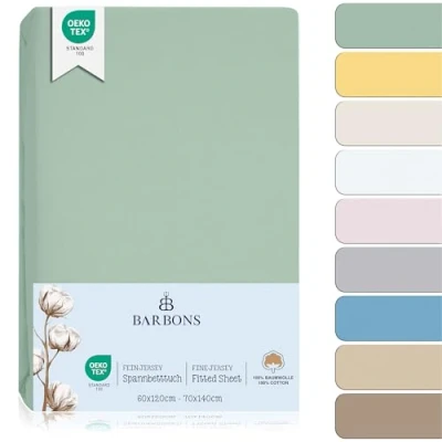 BARBONS Fitted Sheet for Baby/Cot 100% Jersey Cotton Oeko Tex Standard 100 Certified Bed Baby Cot (Green 60 x 120 cm / 70 140 cm)