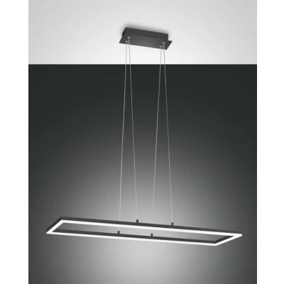Square LED pendant lamp Bard in anthracite The Bard LED pendant lamp by Fabas Luce is made of high-quality materials and emits a discreet, warm white light. Thanks to its discreet design, the dimmable frame lamp can be easily integrated into various furnishings and living styles. The rectangular frame lamp is attached to a decorative rope suspension and mounted in a metal frame. The installed LEDs under the methacrylate cover can be dimmed as required. The slim design, the high light radiation of the LEDs and the modern construction method allow for optimal illumination of the surroundings and make the pendant lamp an aesthetic accessory in a wide variety of living spaces.
