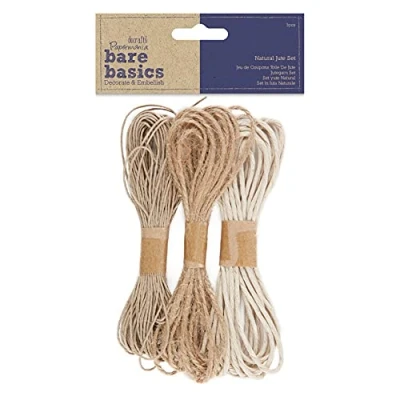 BRAND – The Papermania Bare Basics brand offers craft basics at fantastic value and great quality for money, making them a firm favourite with crafters everywhere. ESSENTIAL – No craft collection is complete without the simple necessities. These craft basics are ideal for keeping stocked up on, for when the urge to get creating takes over. DECORATION – Embellish your crafty projects and creations with this natural jute, for a rustic natural feel. It will add a level of texture and dimension to whatever you choose to make. Whether that’s scrapbook designs, hand made cards, bunting or gift wrapping, the creative options are endless! USE – Easily adheres to chosen surfaces, by either tying or using PVA glue. CONTENTS – The pack contains 3 types of natural jute string in white, hessian and brown.