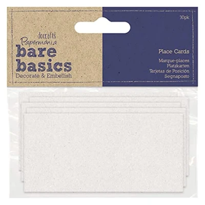 BRAND – The Papermania Bare Basics brand offers craft basics at fantastic value and great quality for money, making them a firm favourite with crafters everywhere. ESSENTIAL – No craft collection is complete without the simple necessities. These craft basics are ideal for keeping stocked up on for when the urge to get creating takes over. These place cards are perfect for weddings, birthday’s, office use, day-to-day use and more. CUSTOMISE – Decorate and adorn your place cards with embellishments and a pop of colour. The kraft base is perfect for you to unleash your creativity. You can also leave them in their natural form for a rustic craft effect. USE – Write your special occasions and upcoming events on these place cards. They can be used to label table seats at weddings so guests will know exactly where they are to sit. CONTENTS – The pack contains 30 white kraft place cards.
