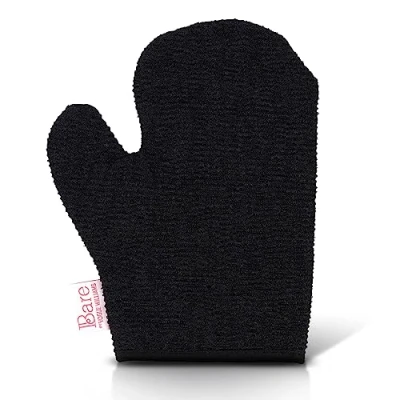 Bare by Vogue Exfoliating Mitt Double Sided Tan for Deep Exfoliation, Built In Thumb Secure Grip Removes Dead Skin Smooth, Radiant Complexion (One Size, Black)