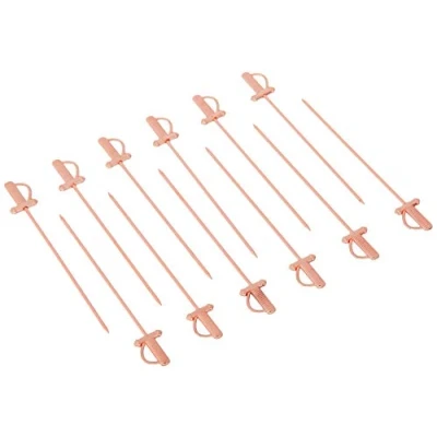 SUPERIOR DESIGN: Constructed with a stainless steel core for durability and specifically designed so they won't fall into martini glasses BARWARE ESSENTIAL: A staple of every barman, these cocktails picks are perfect for quickly and cleanly piercing garnishes; also great for appetizers! INCLUDES: Reusable 4 5/8" sword top copper plated cocktail picks, set of 12 EASY TO CLEAN: To maximize the performance and longevity of your Barfly products, hand washing with mild soap and warm water is recommended. Avoid detergents containing bleach or heavy chlorination BARFLY MIXOLOGY GEAR: Fine barware for the professional bartender or the at-home enthusiast; Barfly has all the tools needed to help craft the perfect cocktail