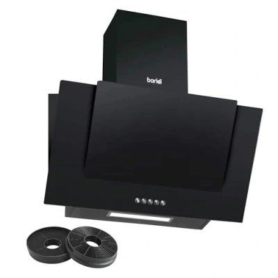 Baridi 60cm Angled Chimney Cooker Hood with Carbon Filters, LED Lamp, Energy Class B, Black Glass DH129