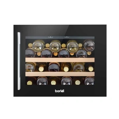 Baridi 60cm Built In 28 Bottle Wine Cooler with Beech Wood Shelves and Internal LED Light, Black DH205